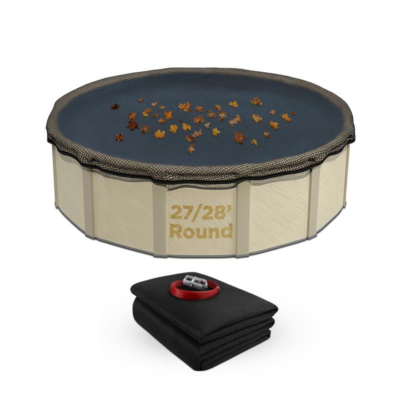 The Buffalo Blizzard® Leaf Net Cover sets a mesh cover over your existing winter cover, helping to trap decaying leaves and other large debris. The ¼" wide holes in the leaf net stop any debris from reaching your cover, while still letting any rain pass through. The durable, rot-resistant material catches fallen debris during the autumn, keeping your winter cover from deteriorating. An additional 3 feet of overlap and a vinyl-coated cable and turnbuckle allow you to secure this leaf net to your swimming pool, while double grommets are placed around the net to weave the cable through.